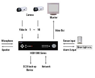 16CH Alarm Input, 9CH Trigger Output, 1 Serial I/O Port (rS232 Terminal),